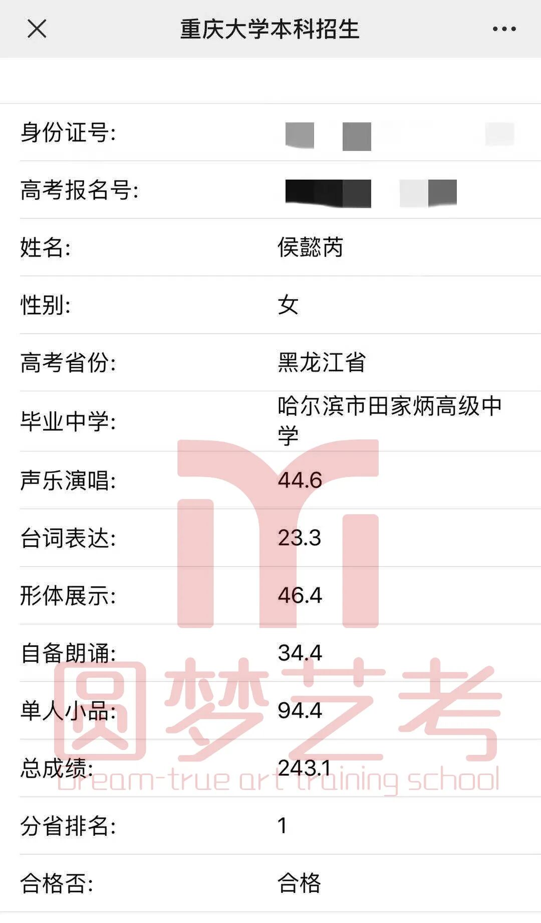 侯懿芮喜欢挑战自我,喜欢在强者之间找寻自己的位置,更喜欢享受过程中带给她的幸福与快乐。2020年漫长又崎岖的艺考之路,侯懿芮如愿抵达终点。七张名校合格证,七个全国全省前三甲。与结果同样绚丽的,是她在圆梦学习,为梦想拼搏的过程。充实了生活,也充实了内心。