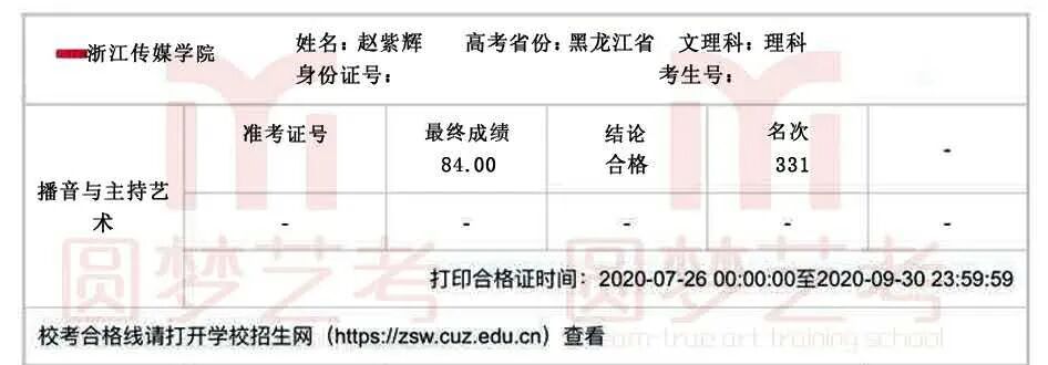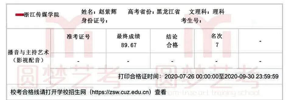 在2020年的艺考中,赵紫辉收获如下