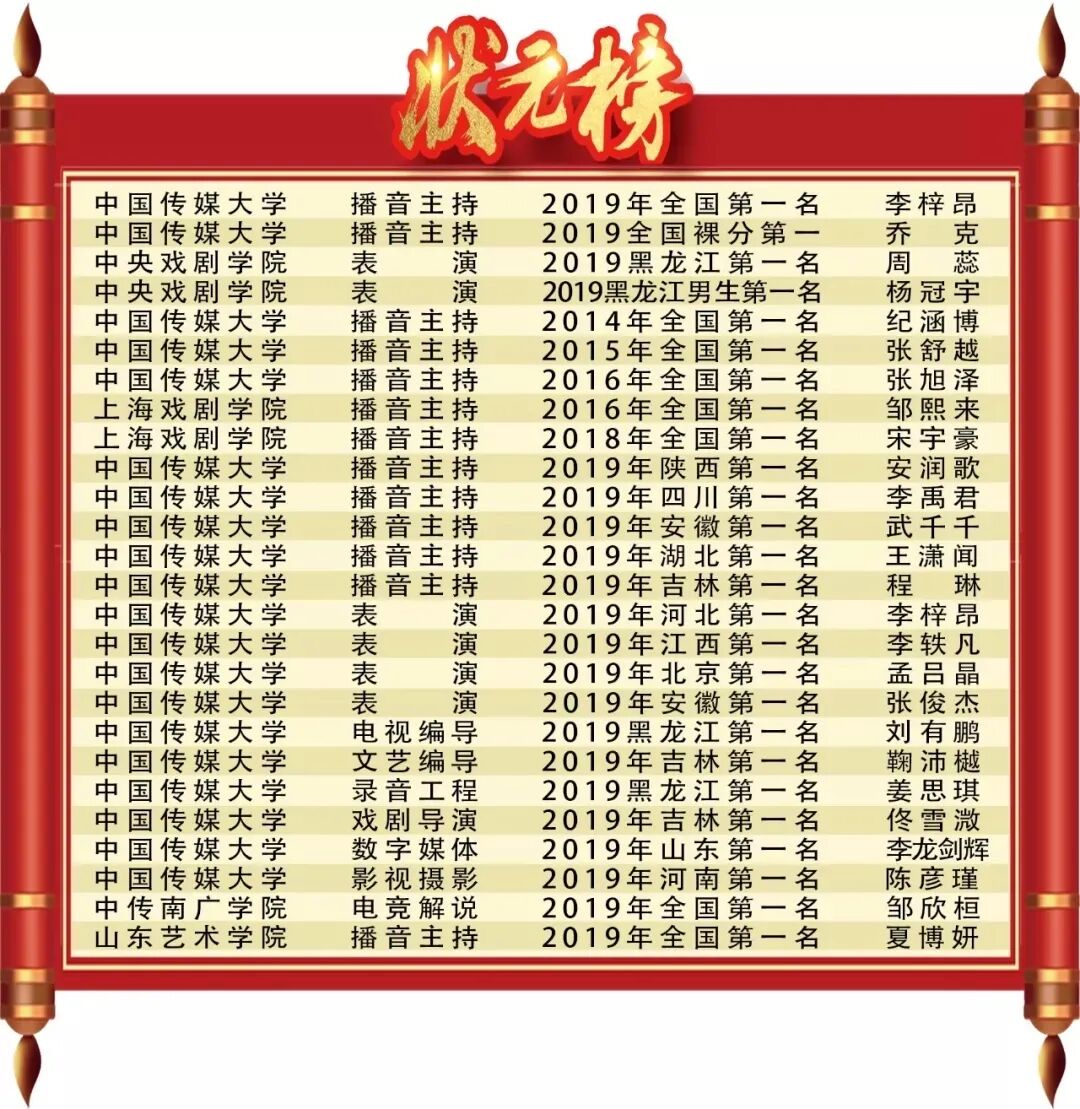 在领略了中传、浙传、中戏、上戏、北电五大传媒名校的辉煌战绩后,今天为大家汇总了圆梦2020年名校播音成绩!