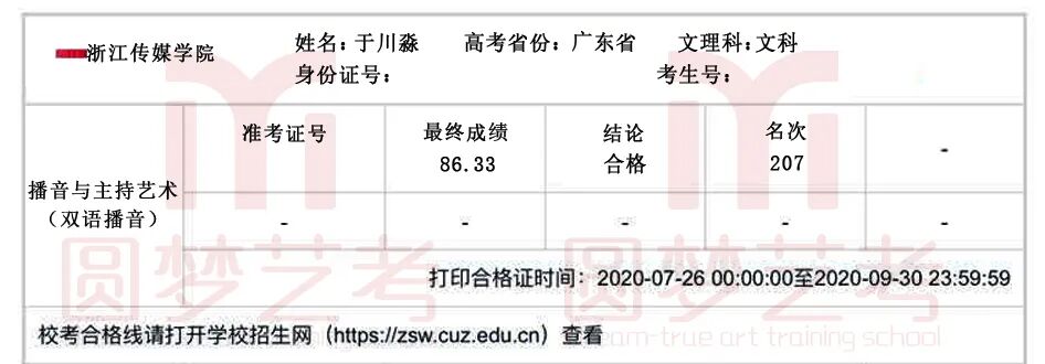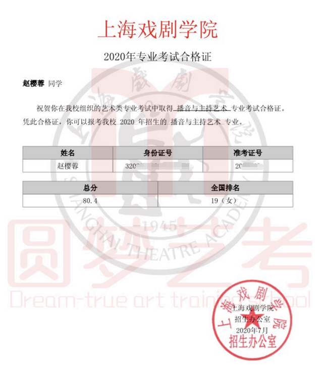 2020年,在中传、浙传、中戏、上戏四大播音主持名校的校考中,圆梦再次取得骄人成绩,囊括179张四大名校播音主持合格证。优秀,我们一直在延续!