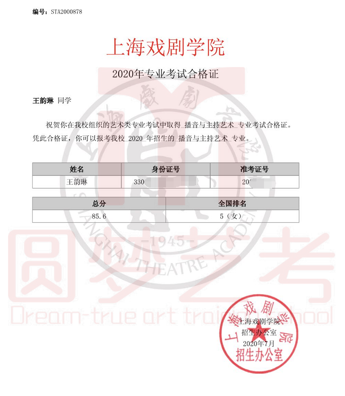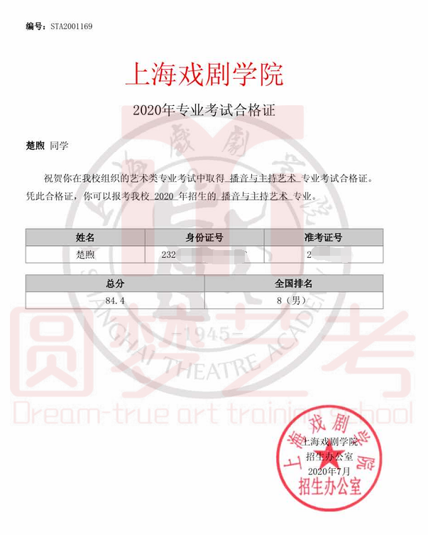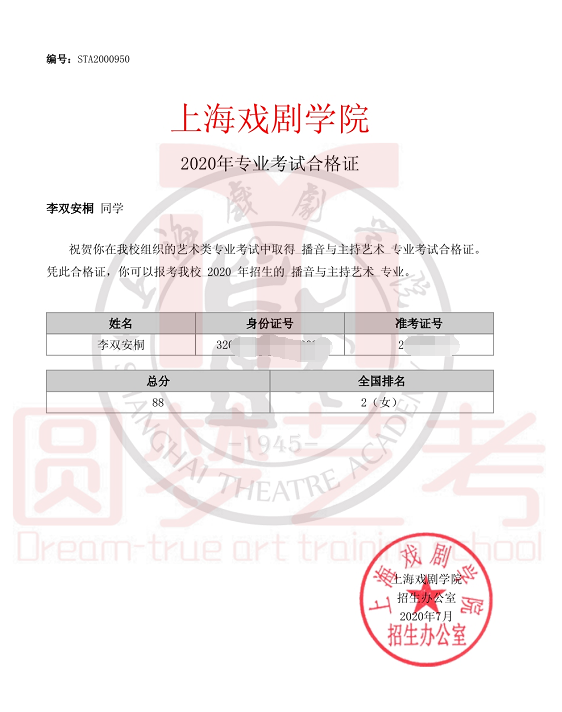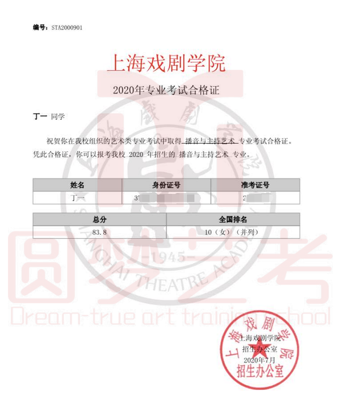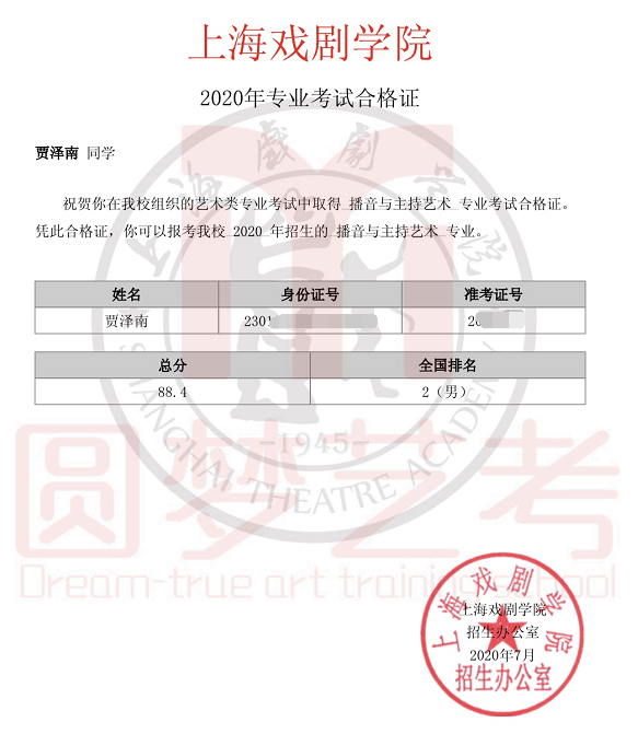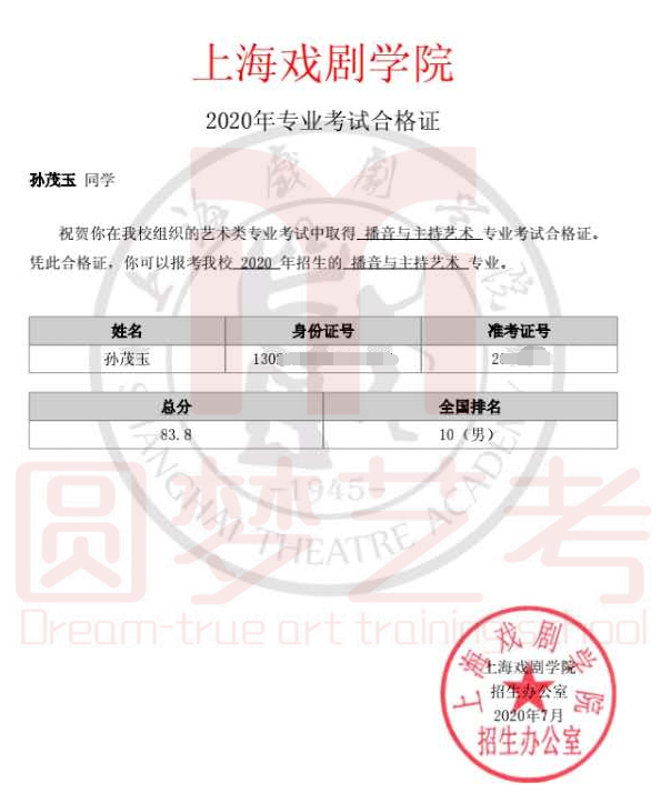 圆梦去年获得了38张中传播音主持合格证,今年在中传播音主持发证总数大幅减少,网络考试难度增大的情况下,依然收获了38张中传播音主持合格证。充分说明了圆梦播音主持教学的专业性、针对性和适用性,也体现出圆梦教师团队强大的的应变能力与抗击能力。免费助力学生录制视频,考前开展线下培训调整状态。从疫情爆发到七月份考试结束,圆梦上下一心,绷紧责任之弦,困难面前勇于担当才是学生艺考成功的最大保障!