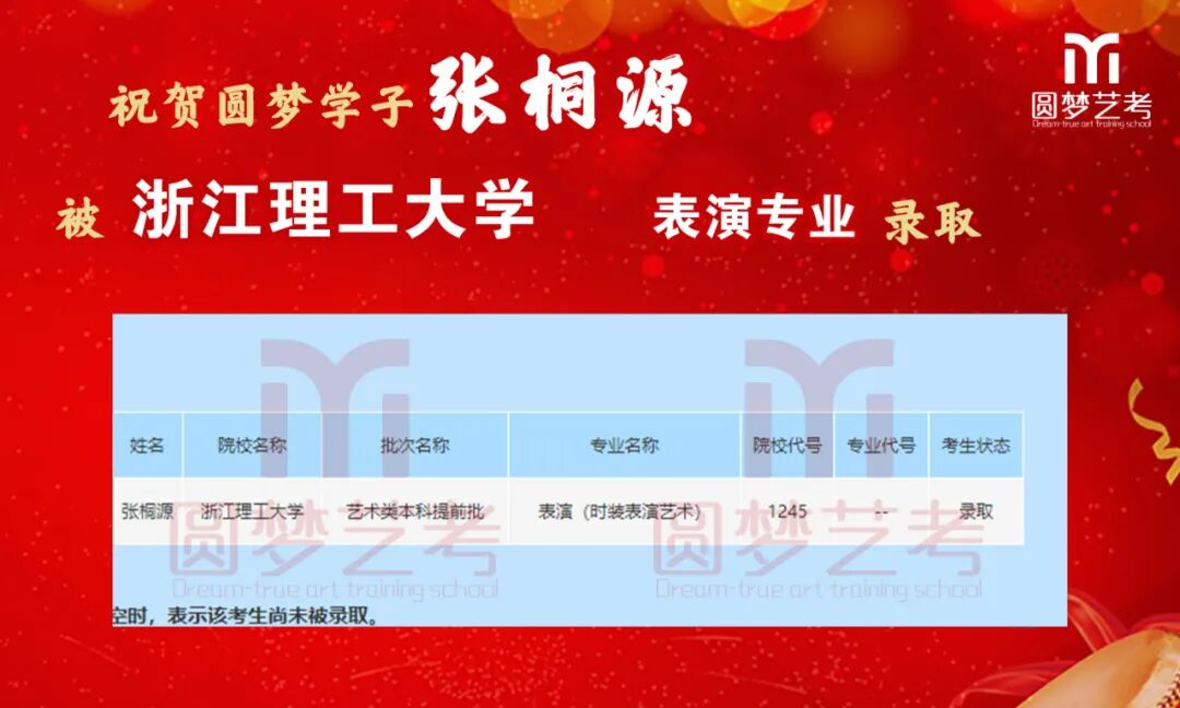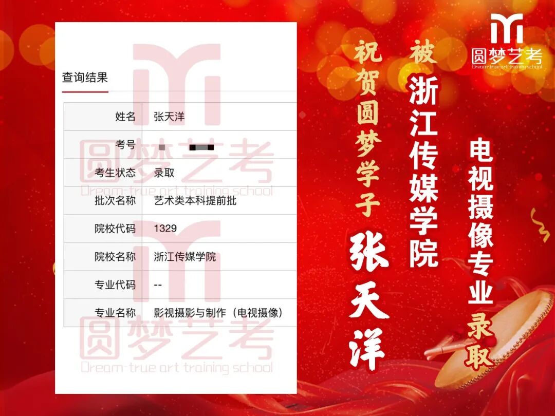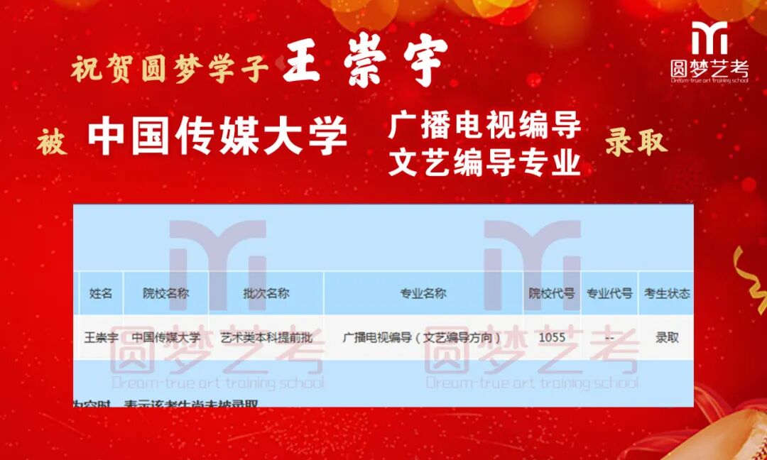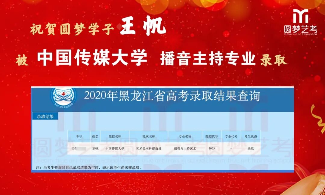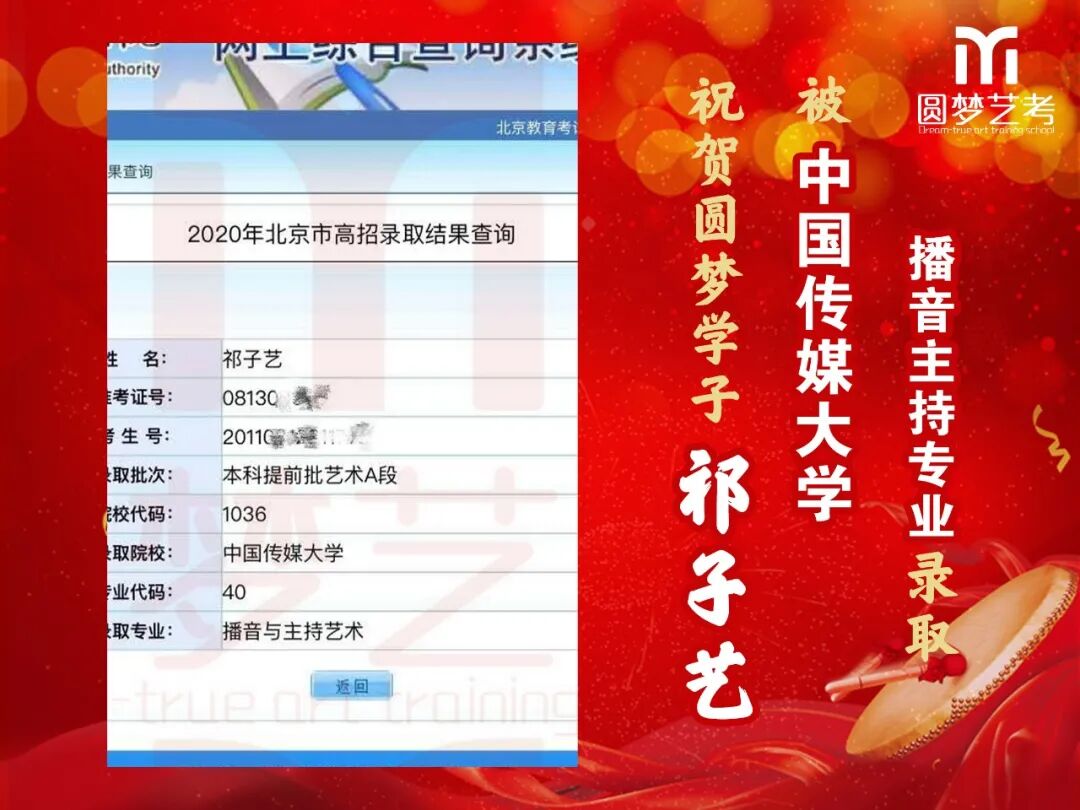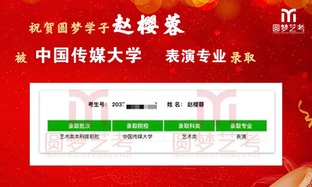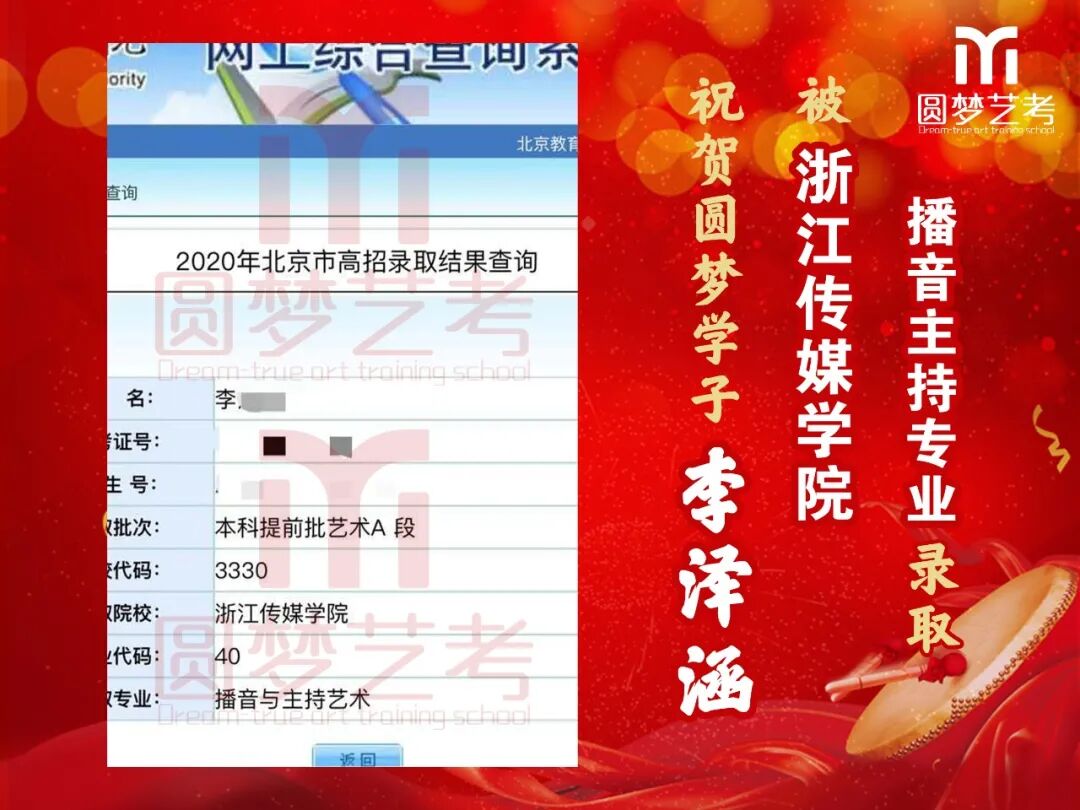 随着2020年艺术类提前批录取工作结束,经不完整统计,圆梦共107人被零表录取,录取人数再次破百!其中五大院(中传、浙传、中戏、上戏、北电)共录取88人!再次成为升学率领跑者!
