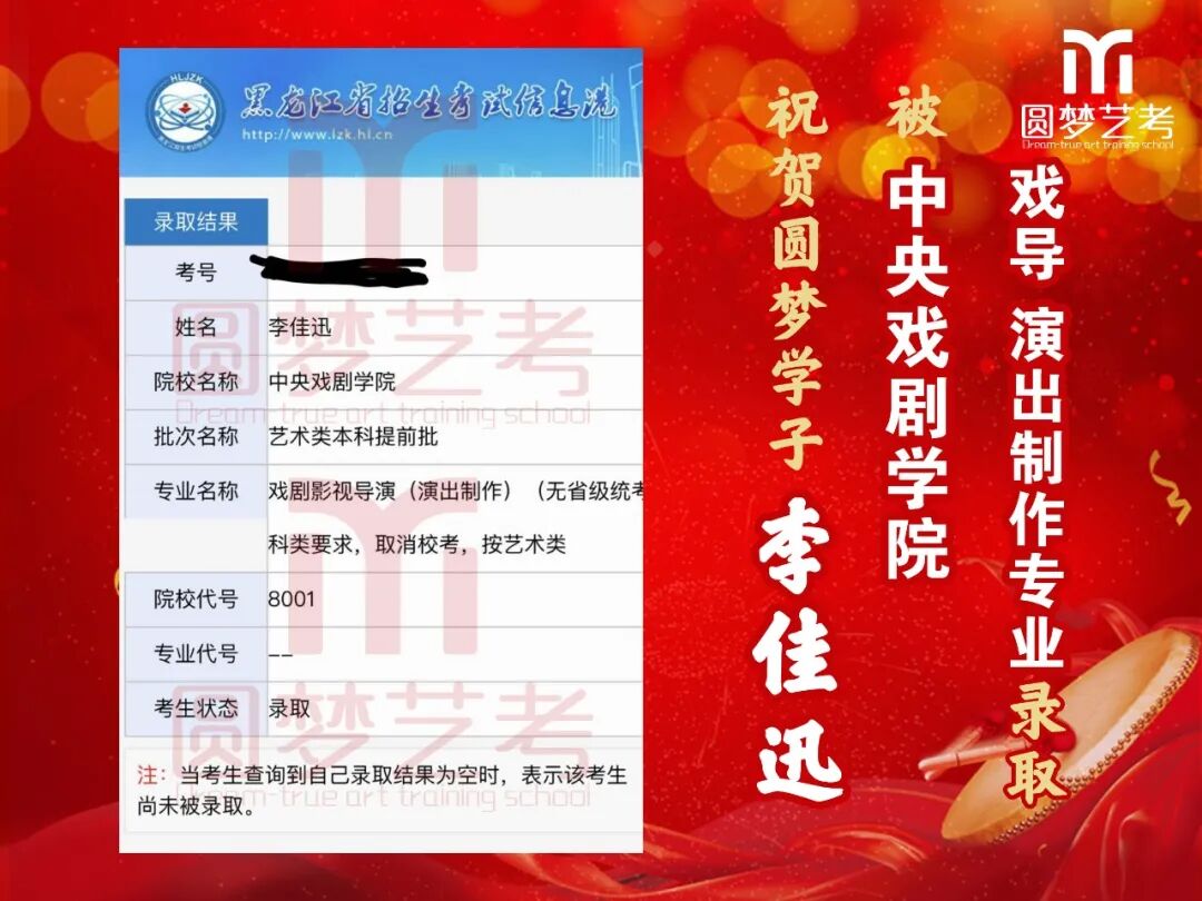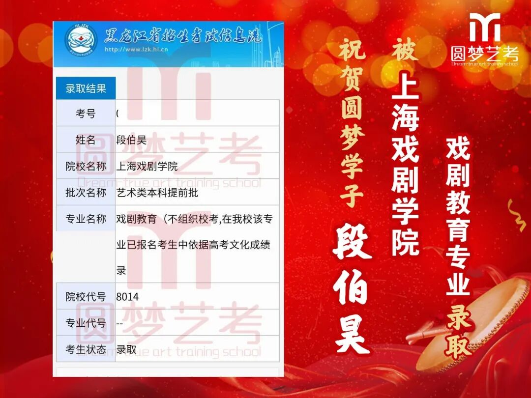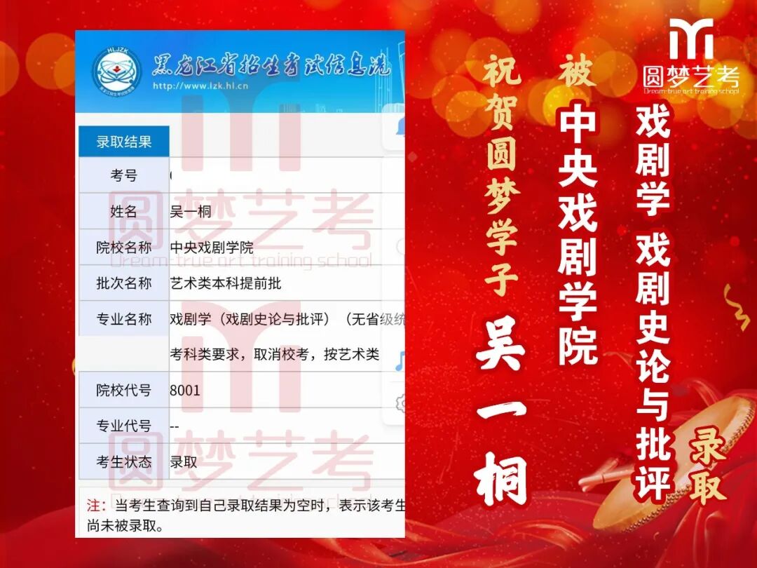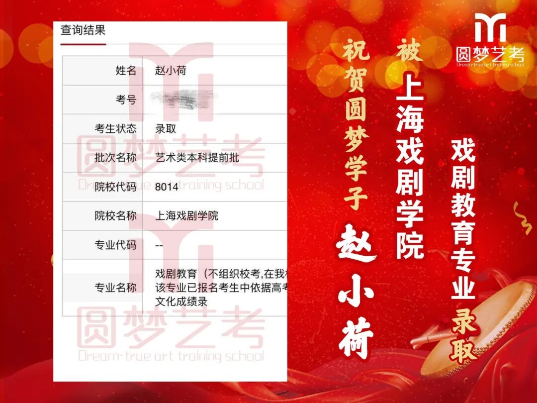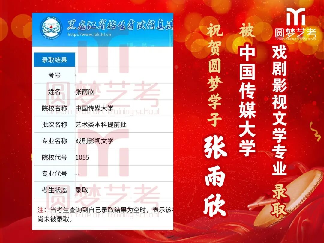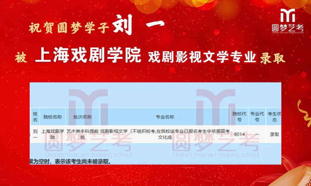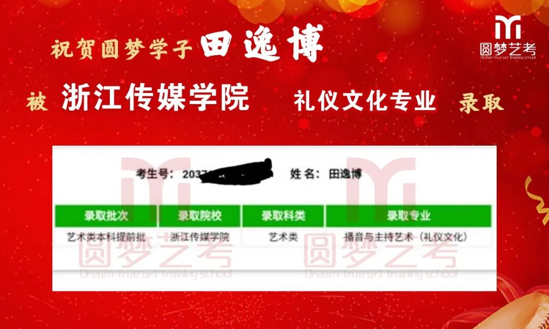 随着2020年艺术类提前批录取工作结束,经不完整统计,圆梦共107人被零表录取,录取人数再次破百!其中五大院(中传、浙传、中戏、上戏、北电)共录取88人!再次成为升学率领跑者!