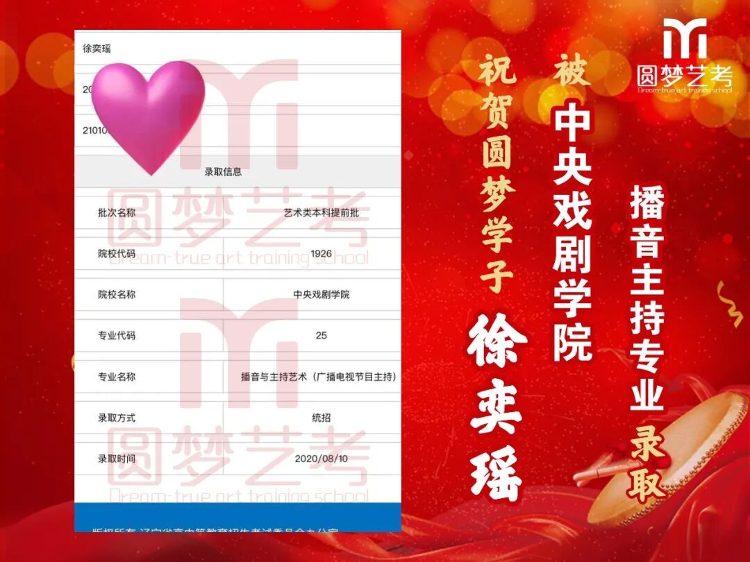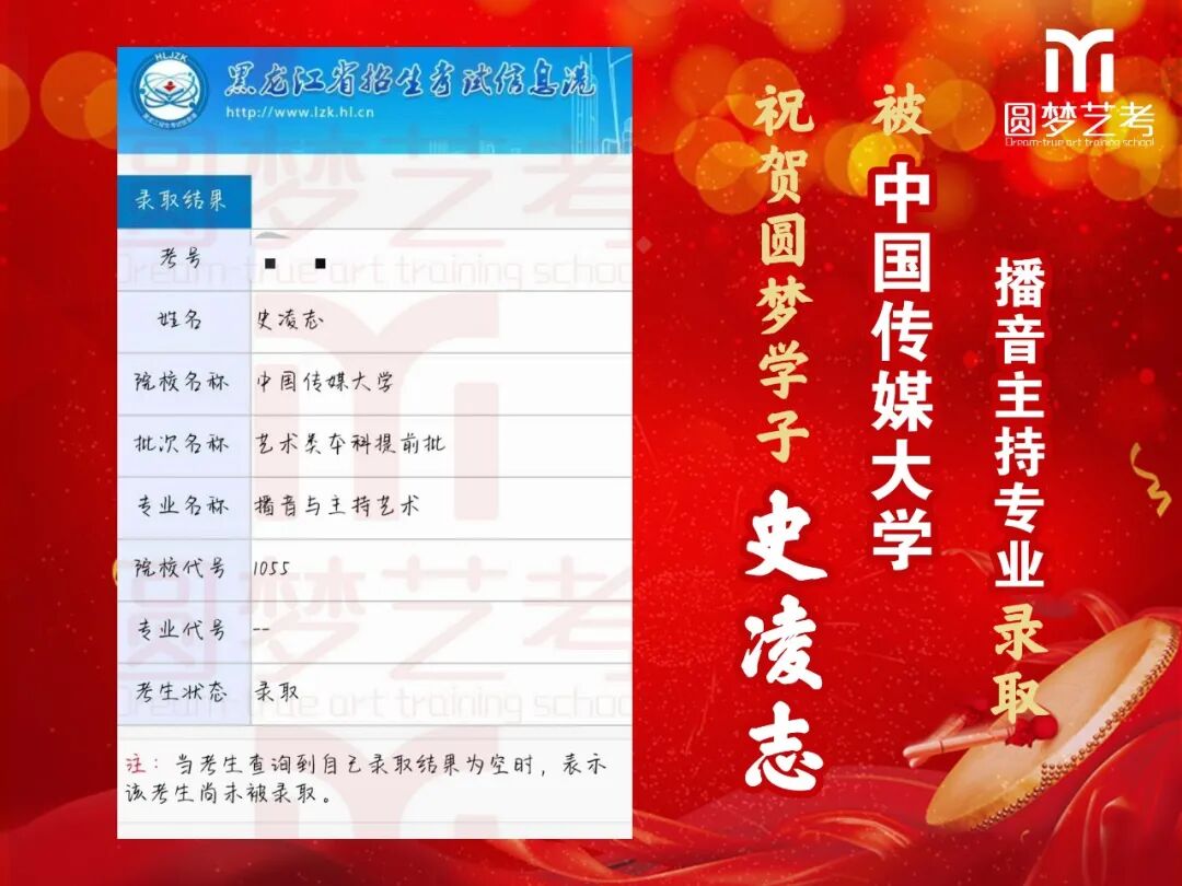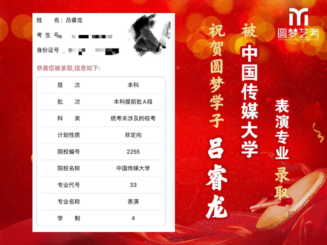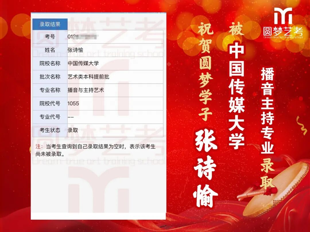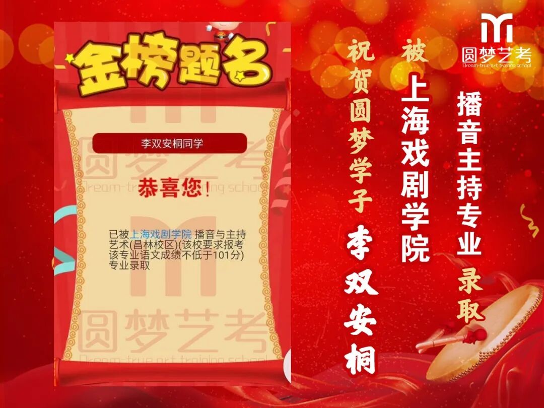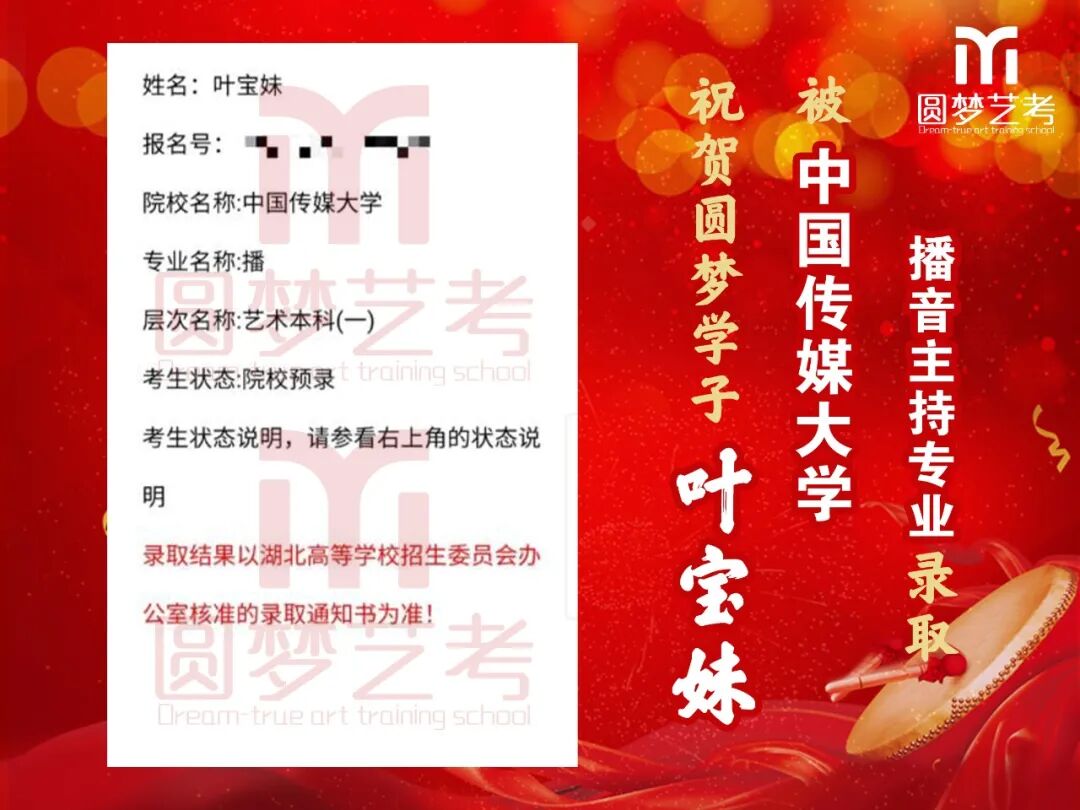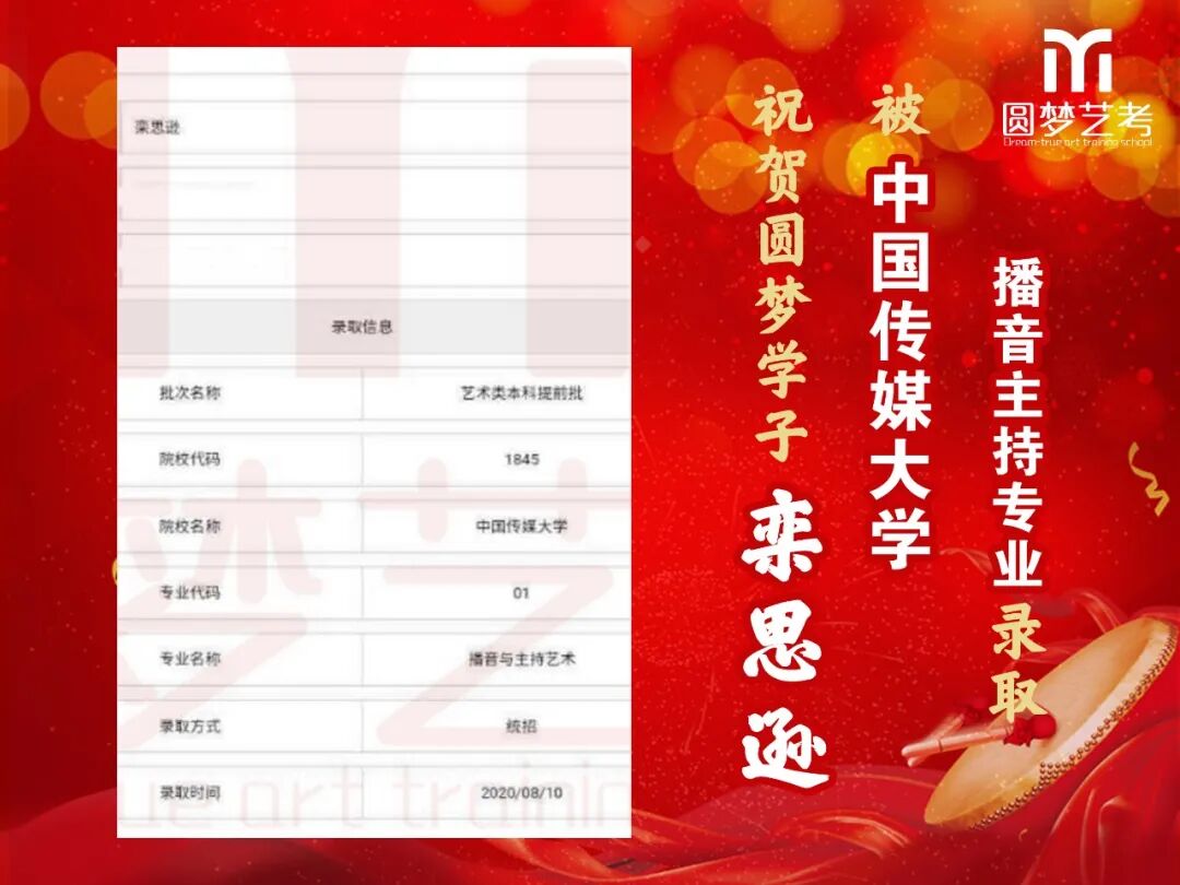 中传播音主持录取13人,全国最多!13人均为圆梦培养,不存在任何争议,有在圆梦从头到尾学习的各阶段完整视频为证!不存在某些艺考学校的无视频、无录取截图、或者下证名单时没有但后来录取突然出现名字等虚报成绩的行为!上戏播音主持圆梦录取五人,占全国1/4(全国录20人),录取人数同样是全国最多!圆梦播音办学22年,近年每年录取中传播音均在13人以上,占据全国七分之一以上!上戏每年5人以上,占据全国四分之一!稳定性最高,录取最高!敢与任何艺考机构细致比较升学率!