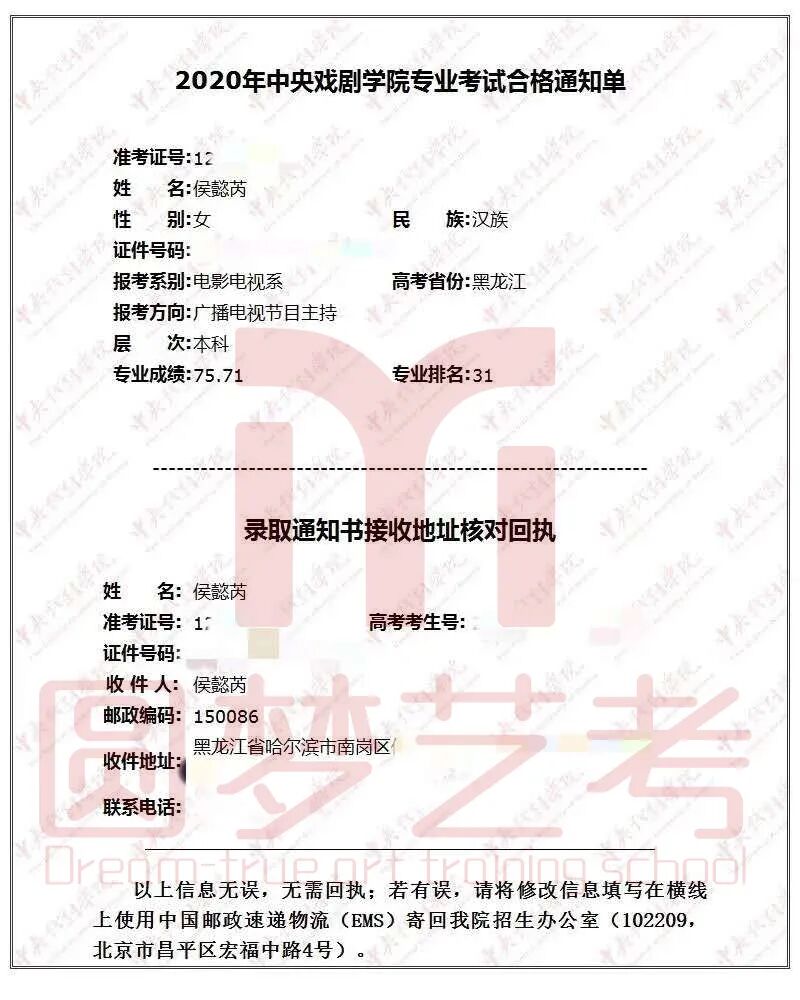 2020年艺考,圆梦学员侯懿芮取得了优异的成绩,中传、中戏、上戏疯狂拿证,几乎在参加过的院校考试中都有斩获。总有人说播音和表演不能兼学,不可兼得,侯懿芮的成功充分打破了这种谣言,播音和表演不仅能同时学,而且都可以学的非常好。只要找对老师,鱼和熊掌可以兼得。