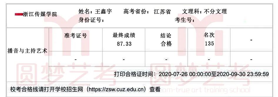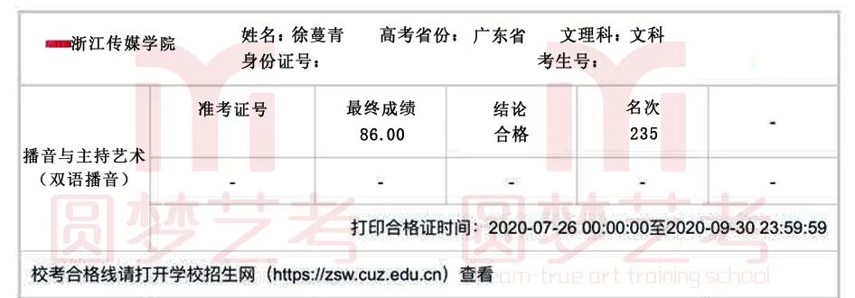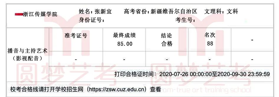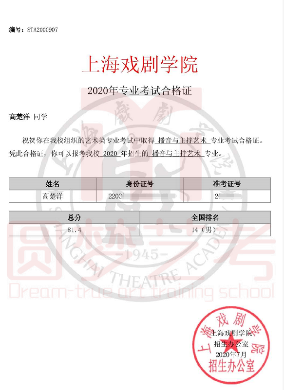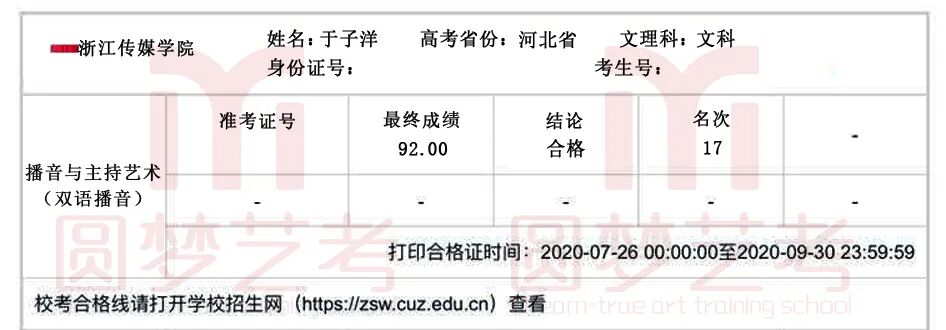 圆梦去年获得了38张中传播音主持合格证,今年在中传播音主持发证总数大幅减少,网络考试难度增大的情况下,依然收获了38张中传播音主持合格证。充分说明了圆梦播音主持教学的专业性、针对性和适用性,也体现出圆梦教师团队强大的的应变能力与抗击能力。免费助力学生录制视频,考前开展线下培训调整状态。从疫情爆发到七月份考试结束,圆梦上下一心,绷紧责任之弦,困难面前勇于担当才是学生艺考成功的最大保障!