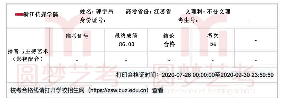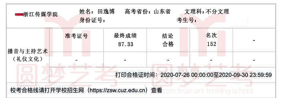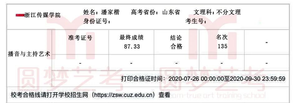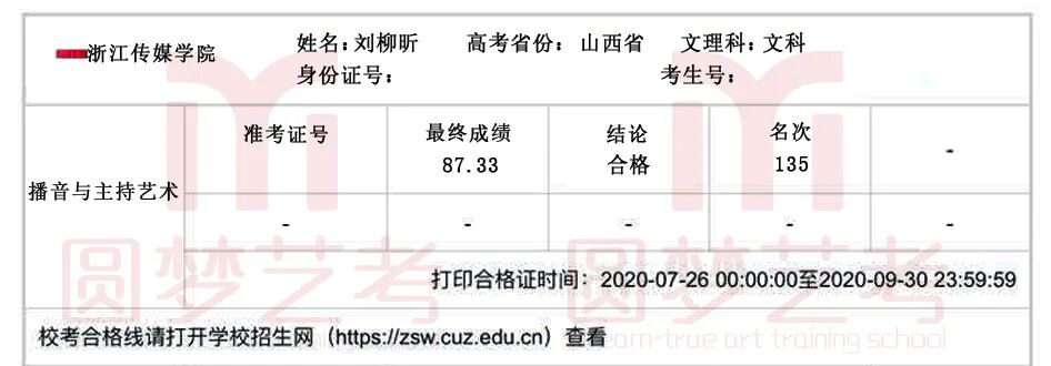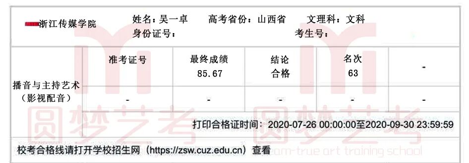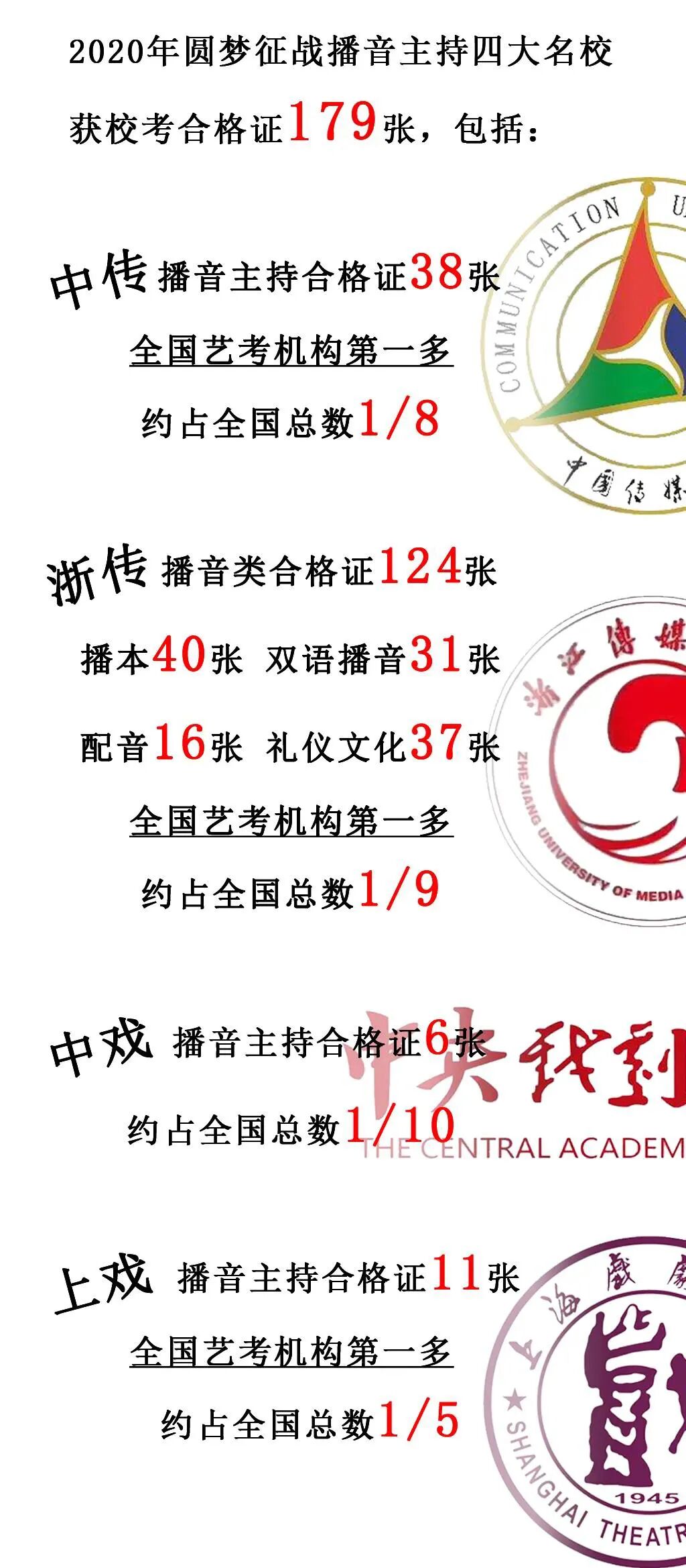 2020年,在中传、浙传、中戏、上戏四大播音主持名校的校考中,圆梦再次取得骄人成绩,囊括179张四大名校播音主持合格证。优秀,我们一直在延续!