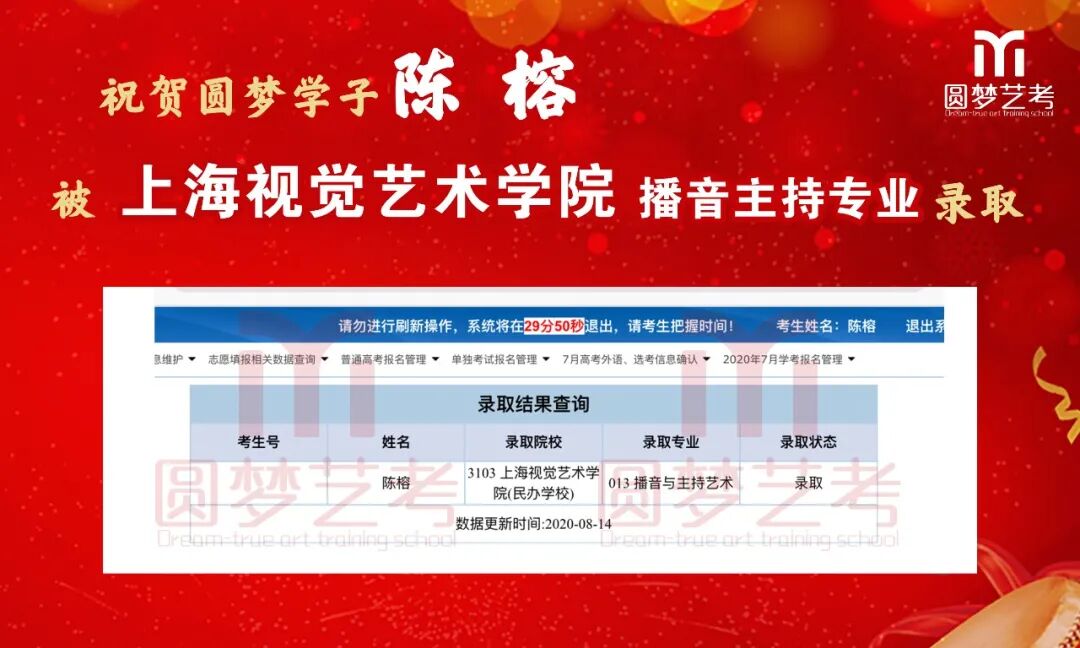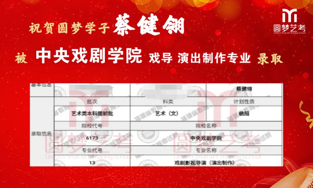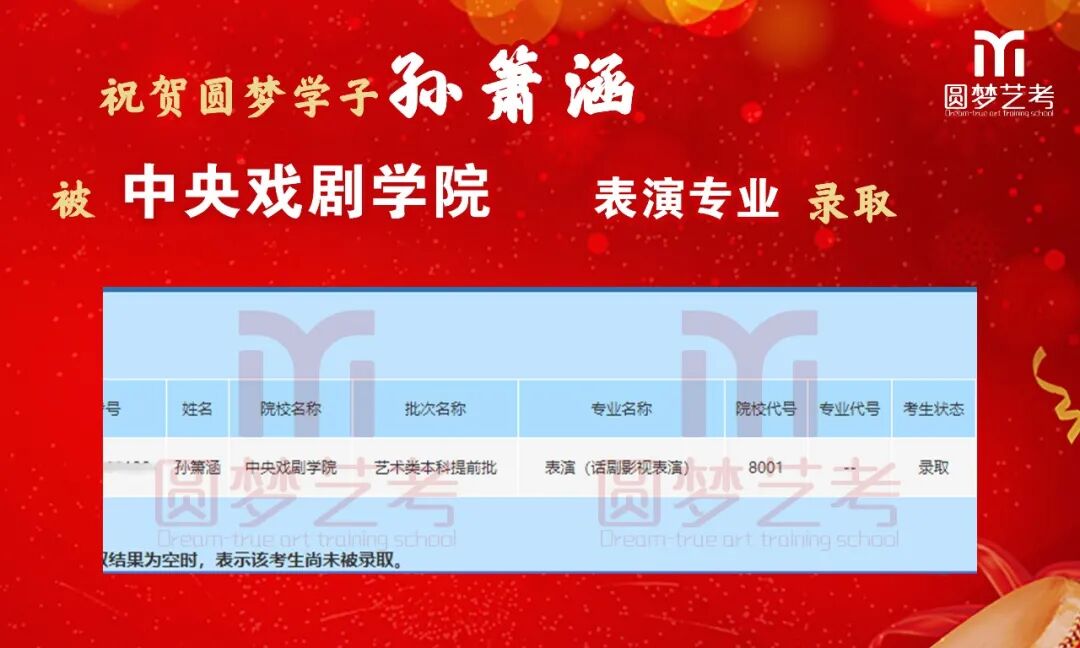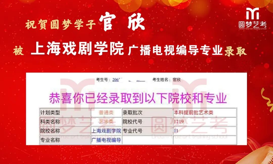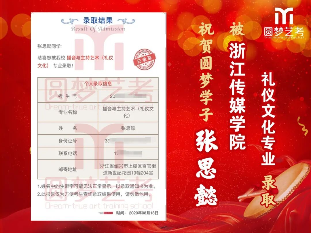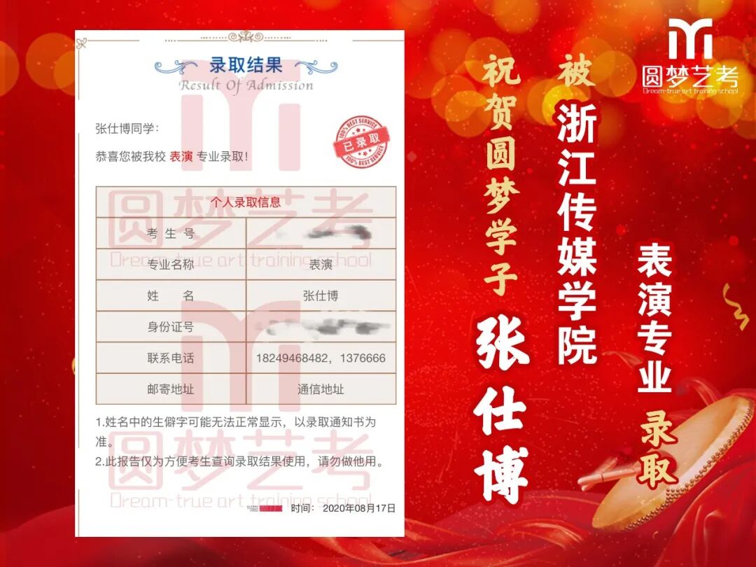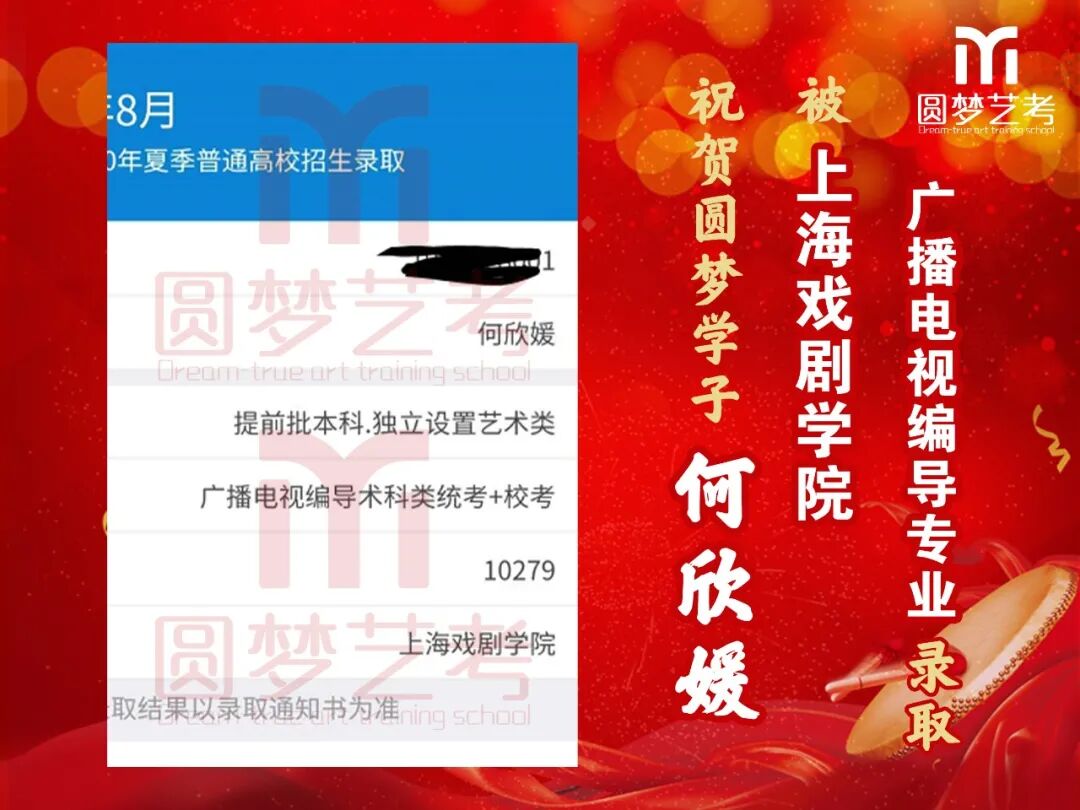 随着2020年艺术类提前批录取工作结束,经不完整统计,圆梦共107人被零表录取,录取人数再次破百!其中五大院(中传、浙传、中戏、上戏、北电)共录取88人!再次成为升学率领跑者!