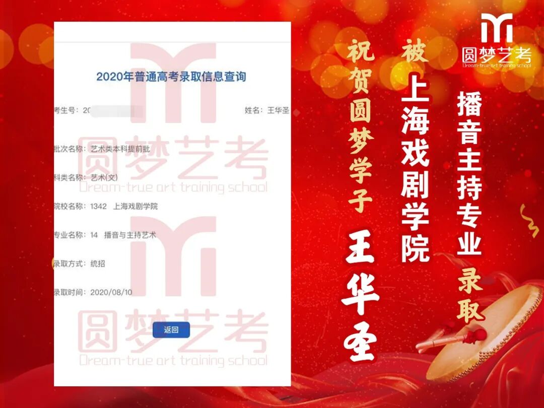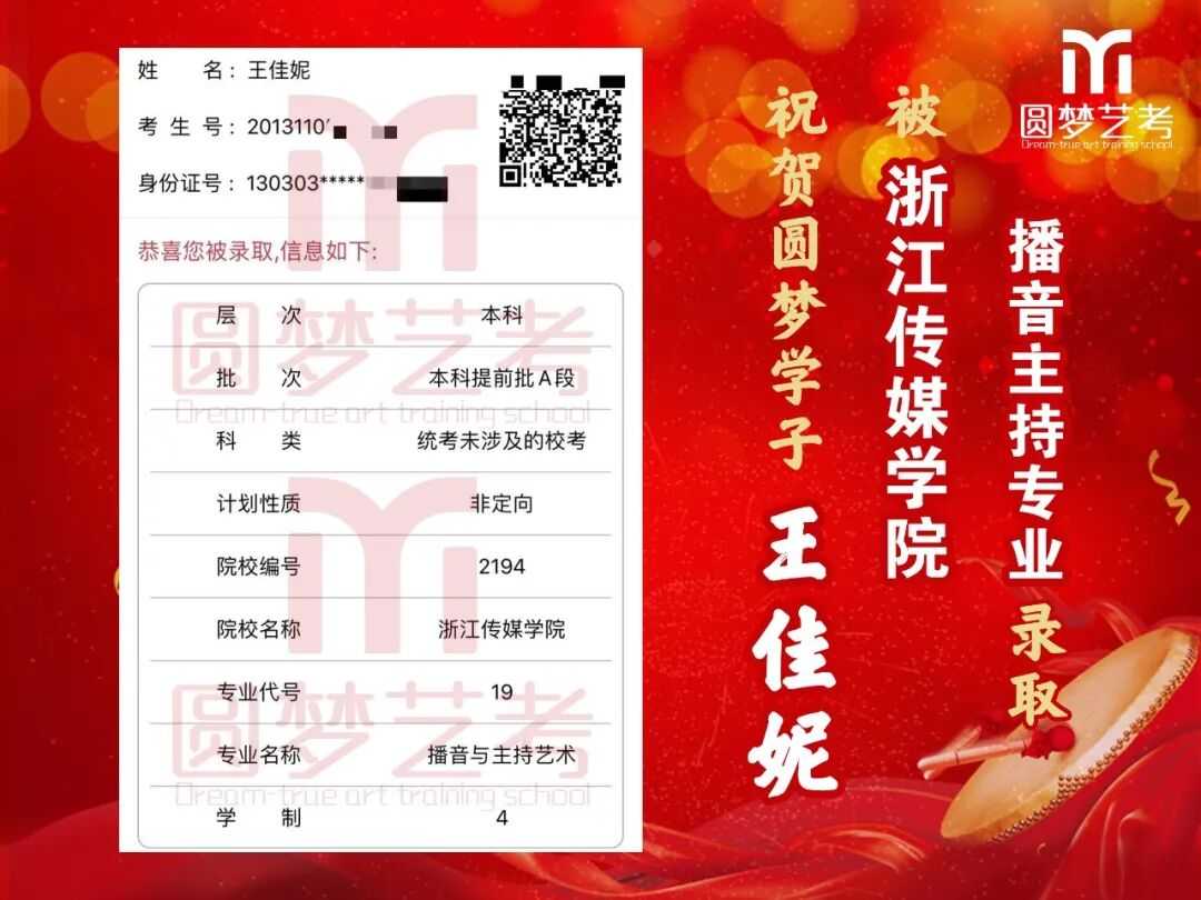 中传播音主持录取13人,全国最多!13人均为圆梦培养,不存在任何争议,有在圆梦从头到尾学习的各阶段完整视频为证!不存在某些艺考学校的无视频、无录取截图、或者下证名单时没有但后来录取突然出现名字等虚报成绩的行为!上戏播音主持圆梦录取五人,占全国1/4(全国录20人),录取人数同样是全国最多!圆梦播音办学22年,近年每年录取中传播音均在13人以上,占据全国七分之一以上!上戏每年5人以上,占据全国四分之一!稳定性最高,录取最高!敢与任何艺考机构细致比较升学率!